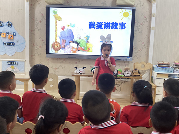 通过讲故事活动,不仅让幼儿在集体面前更好的展示自己,同时,也锻炼了他们的语言表达能力,培养了他们的自信心,激发了战胜自我的勇气。相信在一次次的讲故事活动中,每一位幼儿都能积极主动地参与,勇敢大胆的表现,语言表达能力也能进一步提升。