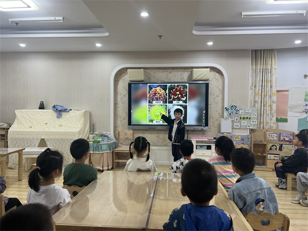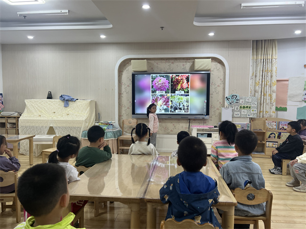 菊花是中国十大传统名花,花中四君子之一,教师带领孩子们一起观察菊花的颜色、花瓣、叶子等特征,让孩子们感知菊花的基本特征,了解菊花背后所蕴含的知识。