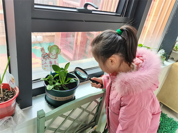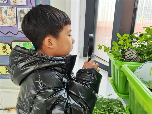 孩子们用放大镜观察了每天陪伴我们的花花草草,观察了身边小伙伴的五官和衣服,原来通过放大镜放大之后,这些东西可以变得这么大!放大镜真是太神奇了!