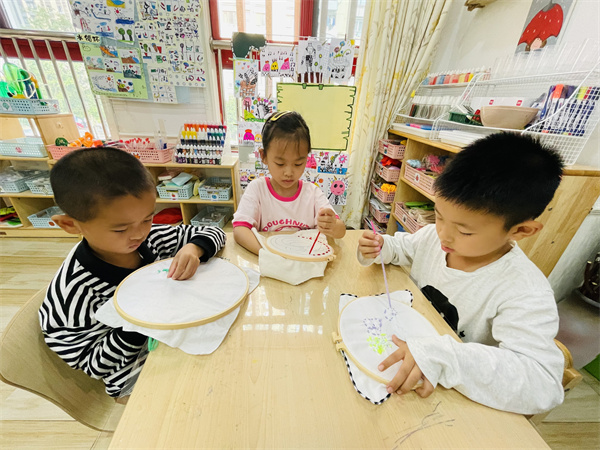 刺绣又称针绣,俗称绣花,是我国民间艺术的重要组成部分,将刺绣作为一种教育资源,运用到幼儿园教育中,有助于让幼儿感受民间艺术美。其中凝聚着深厚的民族文化底蕴,展现着浓厚的中华文化与民族特色。2023年10月19日,大西幼教育集团森林城分园大五班开展了“妙绘巧绣,‘针’有趣”活动,学习传承传统文化。