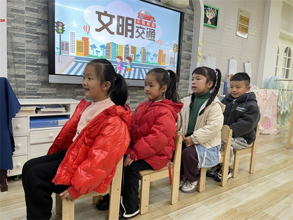 教师通过图片、视频、故事等形式,开展交通安全教育活动,向幼儿宣传交通安全知识,让幼儿认识交通安全标志,认识红绿灯、斑马线,了解不在马路边和车辆多的地段玩耍,骑车要带头盔等交通安全知识,帮助幼儿养成自觉遵守交通法律法规的良好习惯。