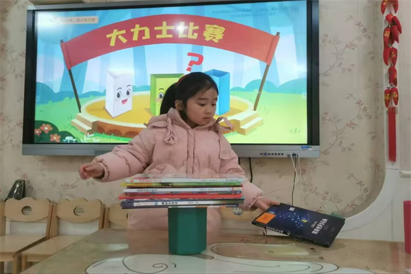 接下来就是见证奇迹的时刻了。通过将图书放置到纸筒上的方法,来测量不同形状纸筒的承重力。通过这一番有趣的实验,我们发现,看似不起眼的圆形纸筒竟然成了大力士,稳稳地托起了51本厚重的书籍!同时,小朋友们也发现了多边形纸筒的边数越多,承重力越大。