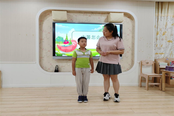 活动以趣味动画《中暑大作战》拉开帷幕,生动形象的卡通人物因高温出现头晕、乏力等症状,引发孩子们热烈讨论。教师结合幼儿生活经验,用“小脸蛋像红苹果”“身体像缺水的小花”等童趣比喻,深入浅出地讲解中暑的表现,详细向孩子们讲解了什么是中暑、中暑的原因、中暑的症状以及预防中暑的方法。