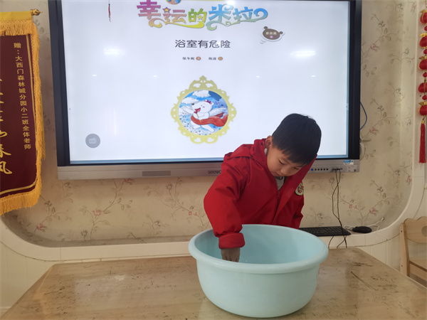 炎热的夏天冲个凉,寒冷的冬日泡个澡。浴室是孩子们天天都会接触到的地方,看似安全的浴室,其实也存在着很多的安全隐患。孩子们由于年龄小,不会意识到这些隐性的危险,所以要让孩子们认识到浴室里的危险,掌握洗澡时必要的自我保护方法非常必要。为了增强幼儿的洗澡安全意识,2024年1月6日,合肥市大西门幼儿园教育集团森林城分园大二班开展“守护洗澡时光,预防潜在危险”的洗澡安全教育活动。