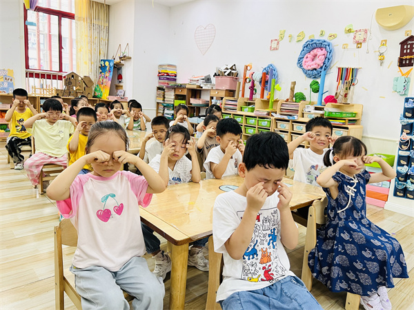 为了促进我们眼睛的健康和明亮,让我们一起学习眼保健操吧!看,孩子们学习得多么认真,对于动作不标准的幼儿,教师们耐心地进行了一对一的指导,确保每个孩子都能准确掌握眼保健操的正确方法,从而有效地保护自己的眼睛。