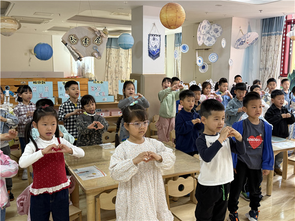 在学唱环节,老师一句一句地教孩子们唱歌,用生动的表情和动作帮助他们理解歌词。“风很轻,云很淡,阳光很暖……”孩子们清澈的童声在教室里回荡,虽然个别发音还不够准确,但他们专注投入的样子,将歌曲中的温暖传递得恰到好处。为了提升表现力,老师还指导孩子们为歌曲编排简单的手势舞,孩子们跟随老师的步伐,挥动手臂、扭动身体,用肢体语言表达对“小美满”的感悟。