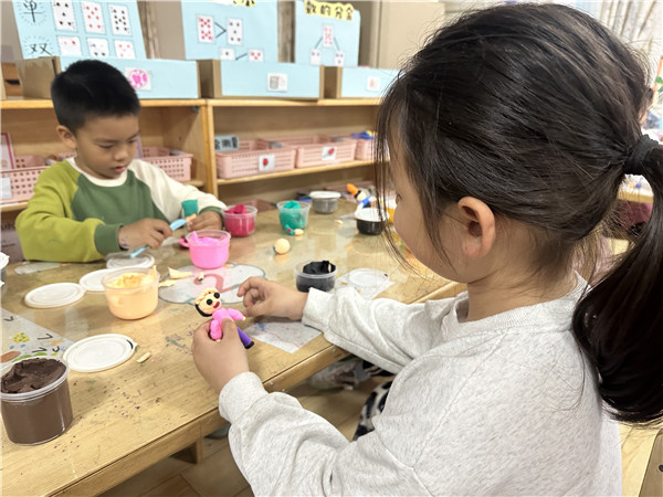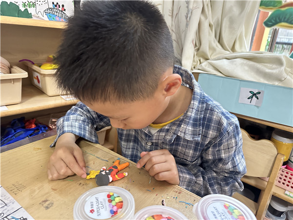 随后的互动环节更是高潮迭起。孩子们分组合作,利用彩纸、黏土等材料制作“小美满”主题道具,有的小组创作出温馨的家庭场景,有的则再现和小伙伴玩耍的欢乐画面。这些充满童趣的作品与音乐完美融合,孩子们手捧自己的作品,一边展示一边歌唱,现场气氛既温馨又热烈。