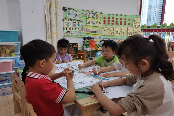 随后,孩子们分成小组,通过绘画来表达“家庭树”的概念。他们运用五彩画笔,认真地构思并描绘出自己的家庭成员,将一幅幅温馨的家庭场景展现在众人面前。在绘画的过程中,孩子们相互交流、讨论。接着,孩子们争先恐后地上台分享自己在日常生活中可以为家人做的小事,例如为祖父母按摩背部、协助父母做家务等。这些微小的举动,彰显了孩子们对家人的深情。