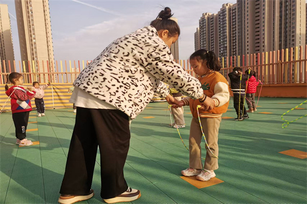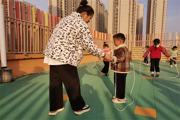 在跳绳过程中,老师耐心地为孩子们提供指导和鼓励,帮助他们纠正动作,增强信心。每当有孩子成功连续跳绳,周围便会响起热烈的掌声和欢呼声,这既是对他们的肯定,也激励着其他孩子更加努力。