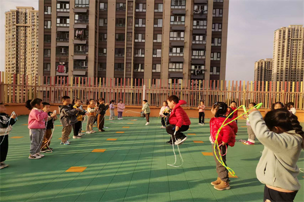 接下来,在老师的引导下,孩子们分成小组展开了跳绳训练。他们稚嫩的面庞上流露出专注与兴奋的神情,手中的跳绳在空中舞动。尽管有些孩子尚未能流畅地连续跳绳,但他们并未选择放弃,而是不断尝试,小小的身躯中蕴含着无穷的活力。