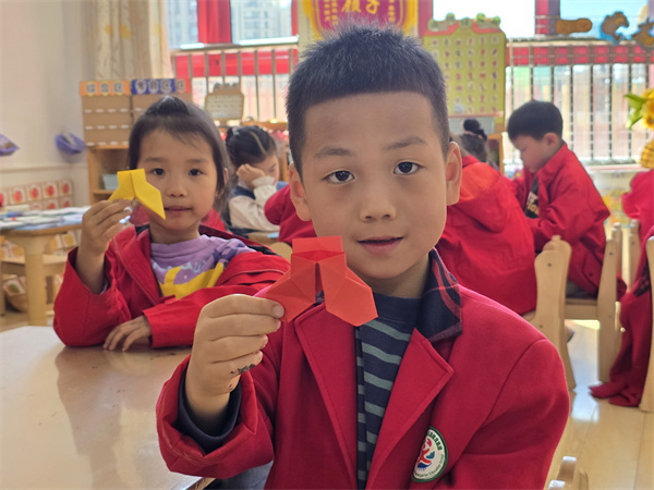 折纸是我国传统手工艺术活动之一,深受幼儿喜欢。通过剪、折、粘贴、描绘等手段,巧妙地把各种纸制成生动有趣的形象。为了提高幼儿的动手操作能力,培养幼儿细心、耐心的良好品质和对折纸的兴趣,2025年4月14日上午,合肥市大西门幼儿园教育集团森林城分园大五班开展了有趣的折纸活动。
