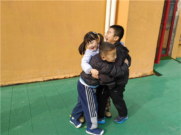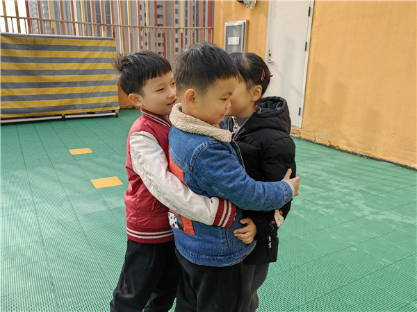 一说到户外活动,孩子们个个精神抖擞,脸上洋溢着笑容,别提多开心了,天气虽寒冷,但孩子们沉浸在欢乐的游戏中,任何外界因素都无法影响孩子们对游戏的渴望与乐趣。你看,他们跟随着老师的指令奔跑、闪躲、拥抱,每个孩子都热情高涨,开心幸福,这是幼儿园里最美的画面。