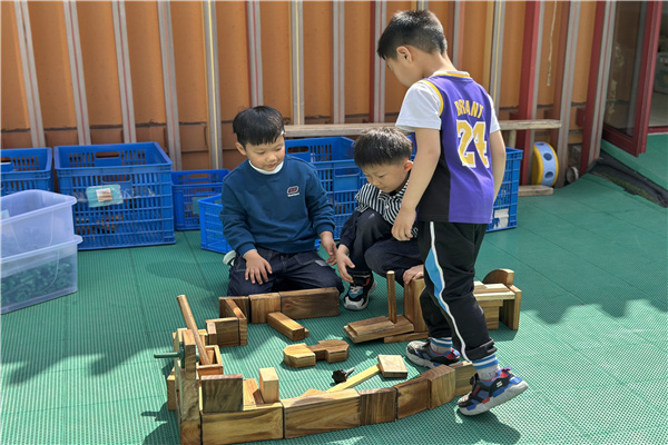 搭建活动正式拉开帷幕,孩子们迫不及待地奔向积木区,自由组队,热烈讨论搭建计划。有的小组计划搭建一座梦幻城堡,“这里要有尖尖的塔楼,还有大大的城门!”有的小组想建造一座长长的大桥,孩子们一边交流,一边动手搬运积木,小小的身影忙碌而专注。