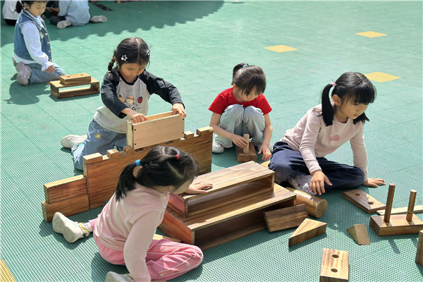 2025年4月25日,合肥市大西门幼儿园教育集团森林城分园大一班举办了一场旨在培养幼儿创造力、想象力及动手能力的户外木块积木搭建盛会。活动中,孩子们化身为小小建筑师,用木块搭建起一个个奇妙世界,在欢声笑语中体验成长的喜悦与创造的快乐。