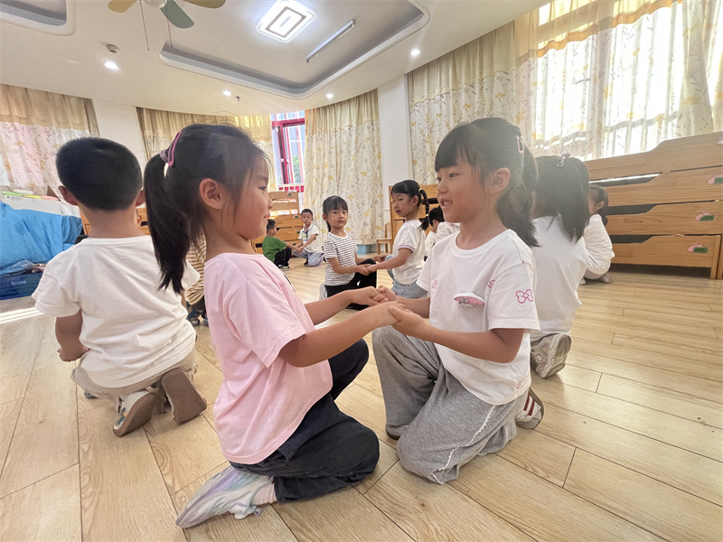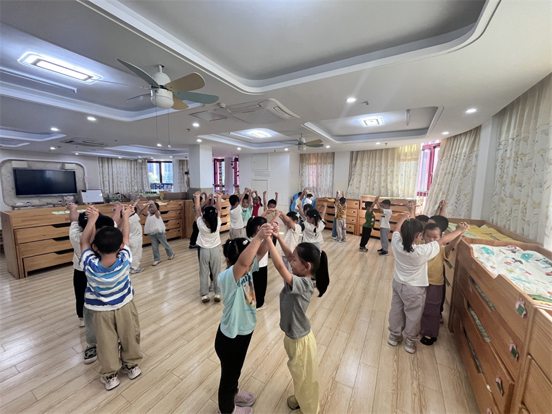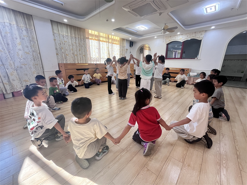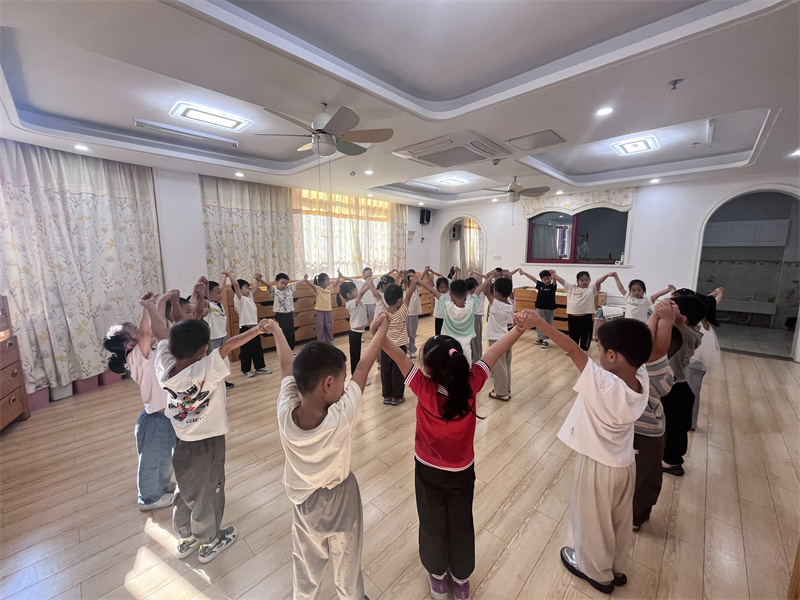 活动最后,孩子们在欢快的音乐中手拉手围成圈,用高低起伏的歌声和动作结束了本次游戏。此次活动不仅让孩子们在玩中学、学中乐,更在轻松的氛围中提升了音乐感知力与社交能力,为童年时光留下了一段充满韵律的快乐记忆。