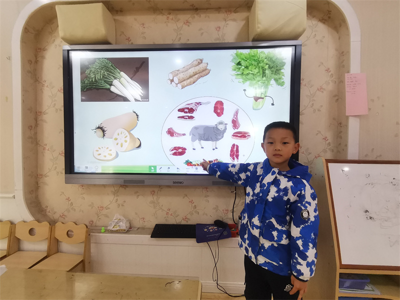 在热烈的讨论之后,教师借助生动形象的图片和实物模型,向孩子们介绍了冬季常见健康食材的营养价值。例如,白萝卜有助于消化,羊肉可以御寒,山药能增强免疫力,而绿叶蔬菜则富含维生素……孩子们睁大眼睛,认真倾听,并积极参与问答互动。“原来胡萝卜能让眼睛更亮!”“吃了蘑菇身体会更强壮!”他们逐渐明白:不是所有好吃的食物都健康,也不是所有看起来普通的食物都没用。通过这一环节,孩子们初步形成了“均衡饮食、科学搭配”的健康意识,为养成良好饮食习惯打下基础。