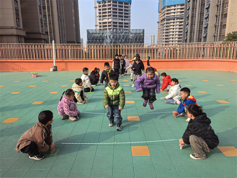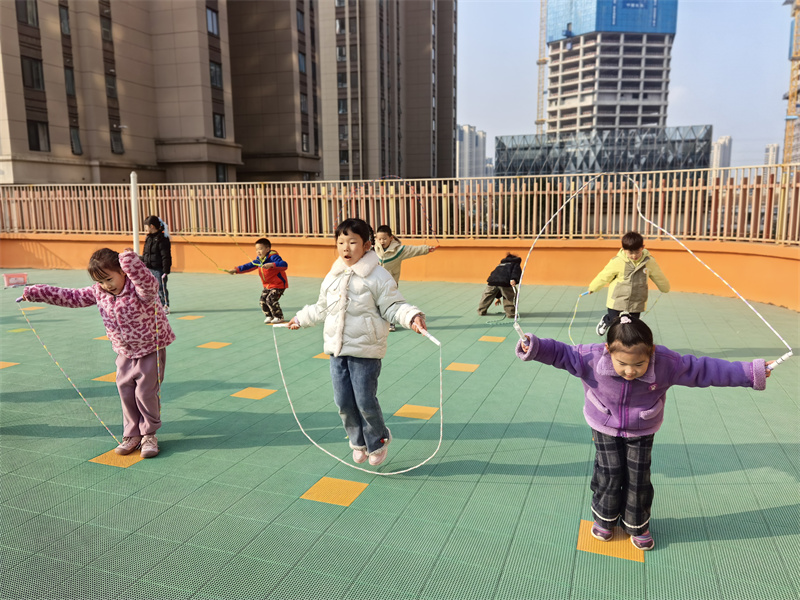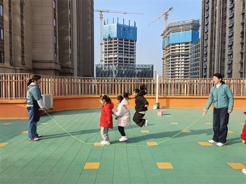 冬日暖阳洒满幼儿园的户外平台,孩子们的欢笑声与跳绳声交织成活力乐章。2025年12月3日,合肥市大西门幼儿园教育集团森林城分园大二班开展了一场以“健康运动”为核心的趣味跳绳活动。