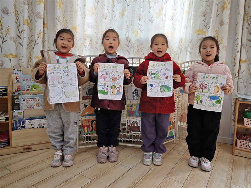 以谈话开启春日话题,引导孩子们畅想春天,说到‘春天’,孩子们的脸上瞬间绽放出笑容,大家七嘴八舌,热烈地讨论起来:春天到了,冬眠的小动物们都会醒来哦。你看,小乌龟就睡醒啦,种子也长出了新芽!小蝴蝶也来了!