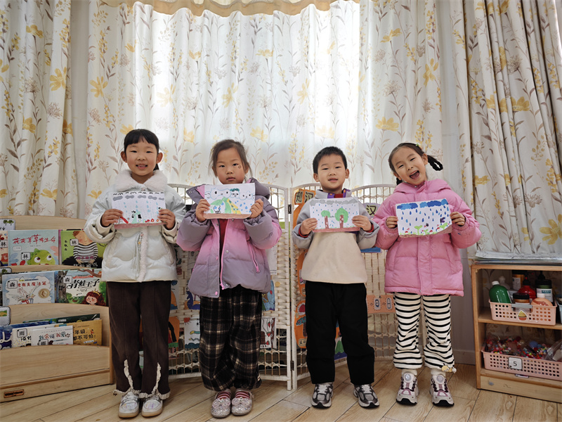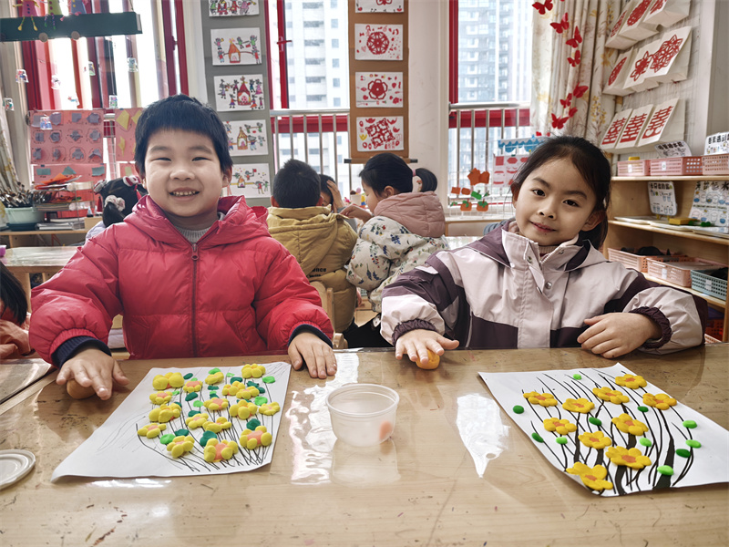 小朋友们化身“小小艺术家”,用各色黏土制作春花、春草,用画笔绘画春雨的色彩,把春天的美好都“装”进画里。大家的作品贴在教室的主题墙上,就像一片小小的“春天花园”,每一笔色彩里都藏着孩子们对春天的好奇与喜爱。