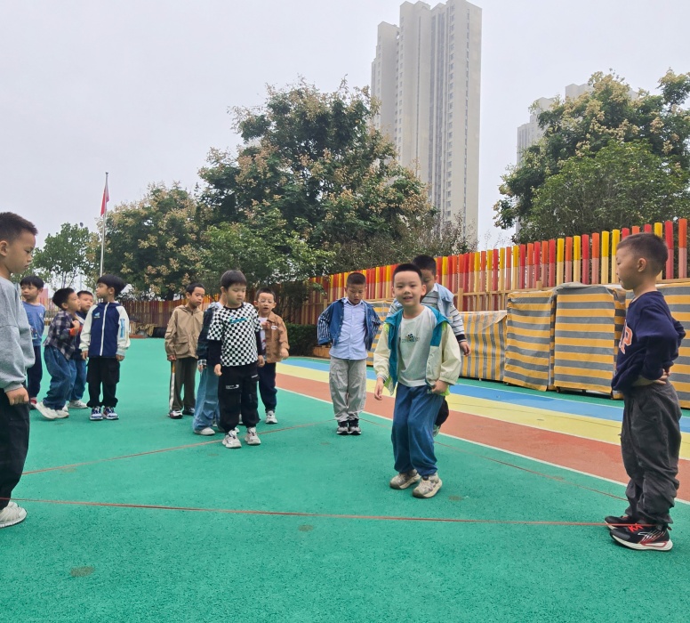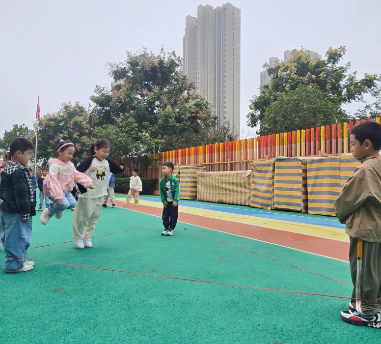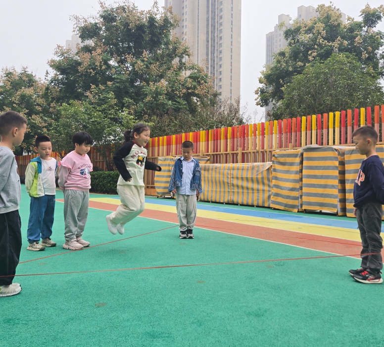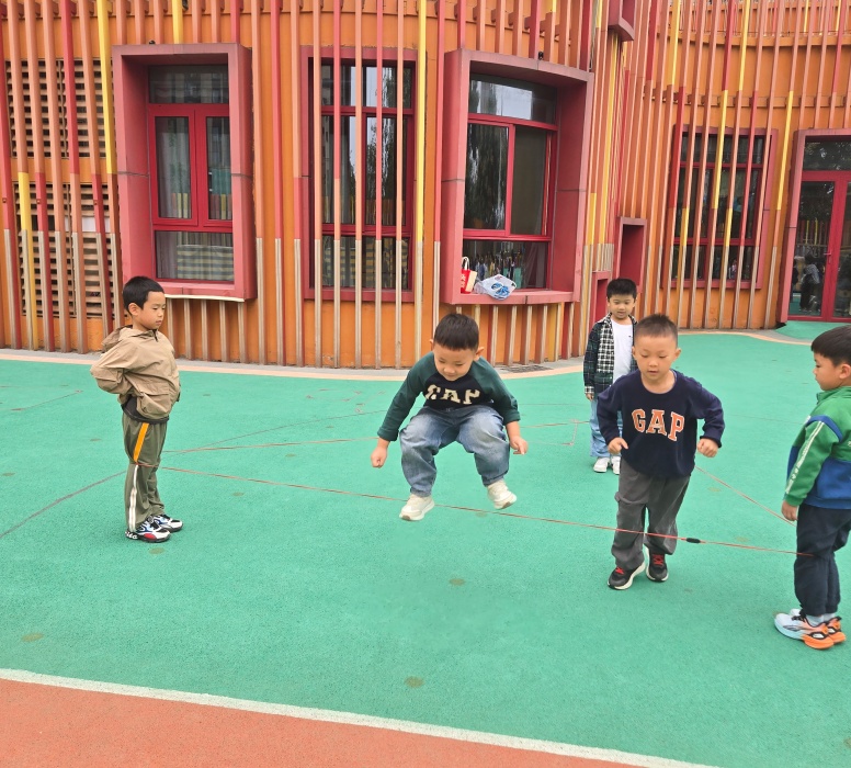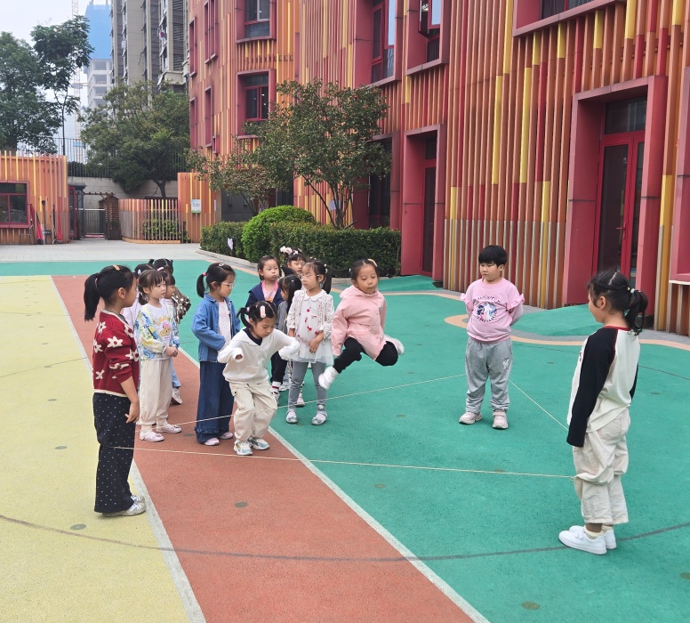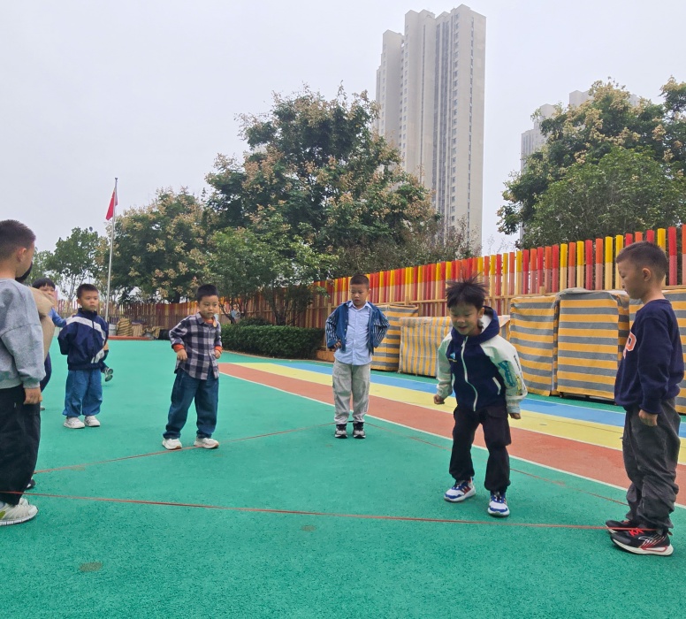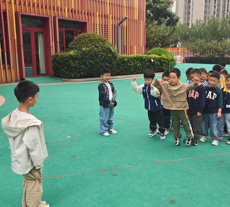 “跳三角形皮筋”不仅延续了传统游戏对下肢力量和协调性的锻炼,更通过几何图形的融入,让孩子们在运动中感知形状与空间,同时在小组互动中提升了合作与解决问题的能力。彩色的皮筋构成一个个灵动的三角,孩子们的笑声与跳跃的身影交织,成为幼儿园里最鲜活的画面。此次活动既丰富了幼儿健康活动形式,又实现了“运动+认知”的双重教育目标,助力大班幼儿在快乐中成长。