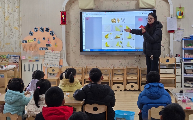 2026年1月6日,合肥市大西门幼儿园教育集团森林城分园大六班教室里暖意融融,一场以“灵动纸鸽,快乐成长”为主题的折纸活动热闹举行。孩子们在老师的指导下,用彩纸折出了一只只形态各异的鸽子,在实践中感受手工艺术的魅力,锻炼手部精细动作与创造力。