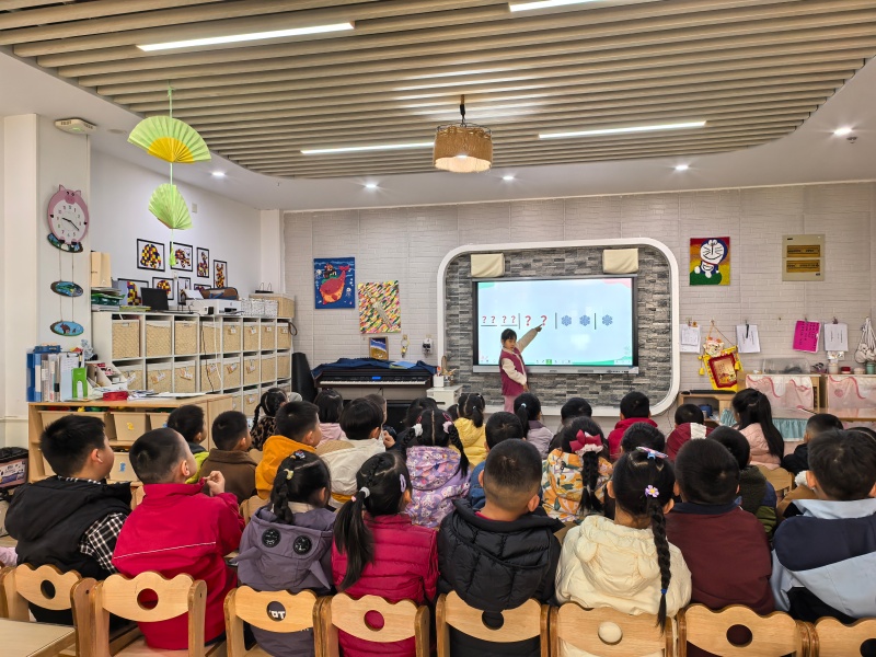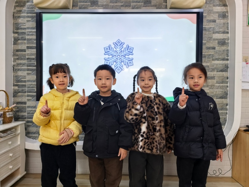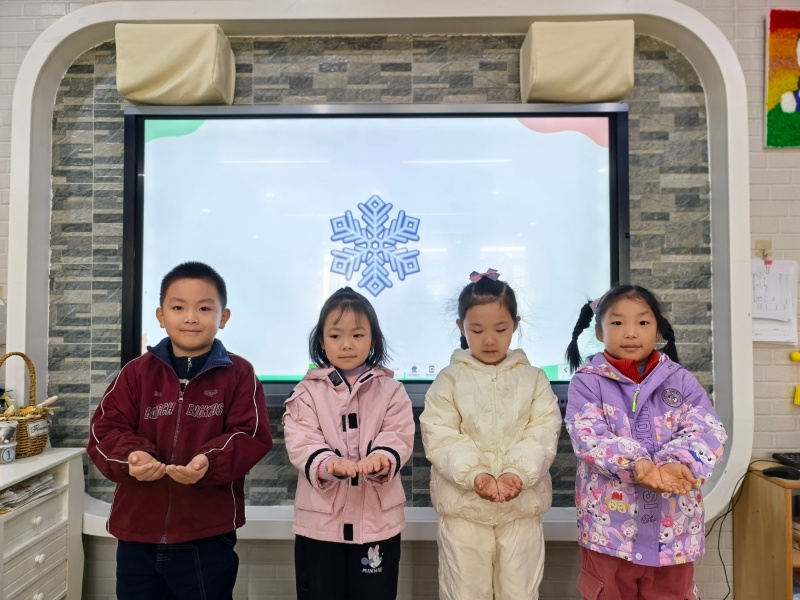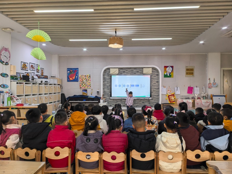 活动开始前,老师先以雪花主题小故事导入,唤起孩子们对雪花的美好想象,随后播放优美旋律,带领孩子们熟悉节奏、逐句学唱,“雪花雪花,满天飘”的清脆童声萦绕教室;同时融入趣味互动,孩子们用小手模仿雪花飘落的轻盈姿态表现雪花飘落的场景,活动的最后,老师组织孩子们进行了小组表演。每个小组都精心设计了自己的动作和队形,孩子们的创意和表演赢得了阵阵掌声,整个教室充满了欢声笑语。