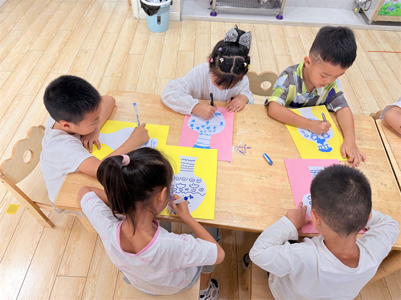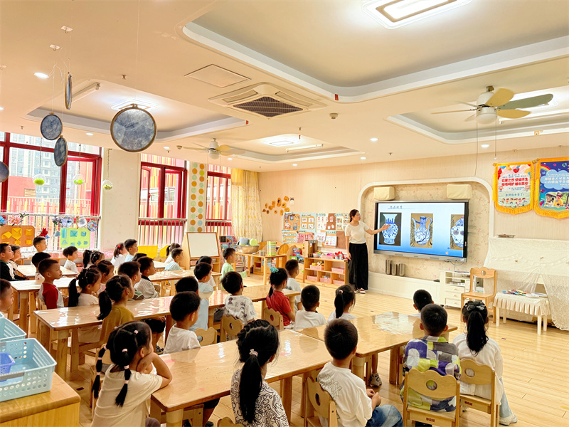 为贯彻《3-6岁儿童学习与发展指南》中艺术领域“培养幼儿对美的感受和体验,引导幼儿用自己喜欢的方式进行艺术表现和创造”的要求,2025年10月10日,大西幼教育集团森林城分园大四班开展了美术活动《青花瓷》,带领孩子们走进中国传统陶瓷艺术的魅力世界。