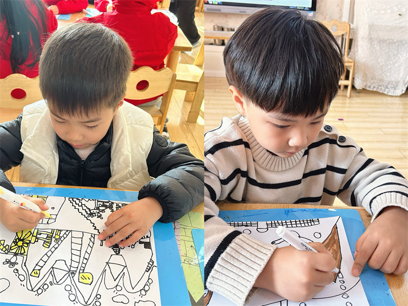 在创作环节中,孩子们充分发挥想象力,用画笔描绘出自己心中的冬日雪景。作品完成后,老师组织孩子们进行作品分享,大家在相互学习与启发中,不仅感受到了创作的乐趣,还增强了表达能力和自信心。
