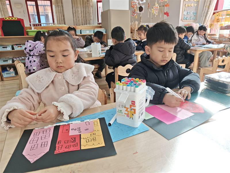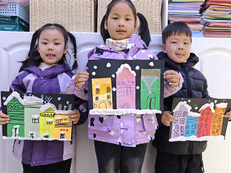 幼儿美术活动是幼儿教育活动的主要部分,锻炼了幼儿的动手能力、学习能力,不仅激发了幼儿对美的感知,同时也有助于提升幼儿的创造力。为了提高幼儿的手眼协调能力,了解冬天的外景特征,能用几何图形拼贴房子,添画形成冬天的雪景。2025年11月28日上午,合肥市大西门幼儿园教育集团森林城分园大五班开展了“冬日雪屋”的美术活动。