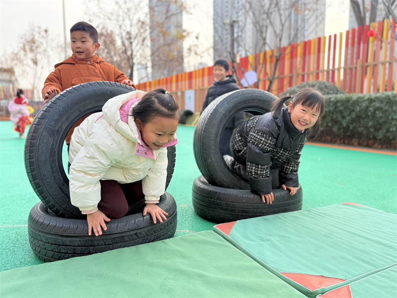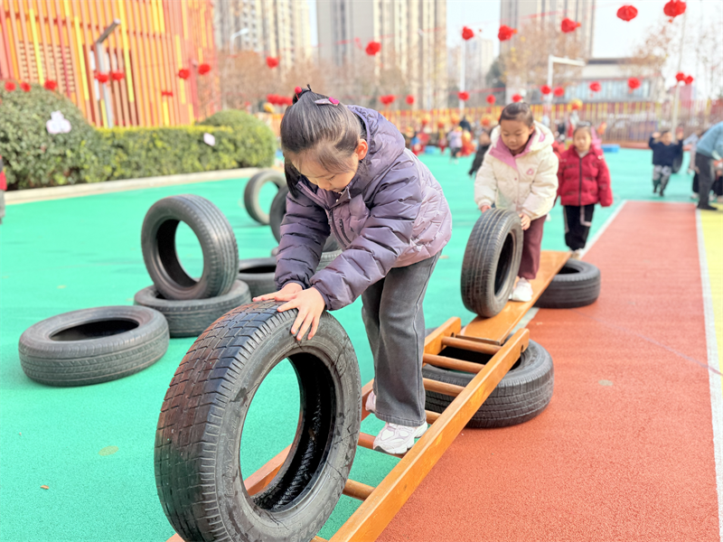为丰富户外体育活动形式,促进幼儿身体素质与综合能力发展,2026年1月6日,合肥市大西门幼儿园教育集团森林城分园大一班开展“挑战器械乐园”主题户外体育游戏活动,让孩子们在器械探索中收获快乐与成长。