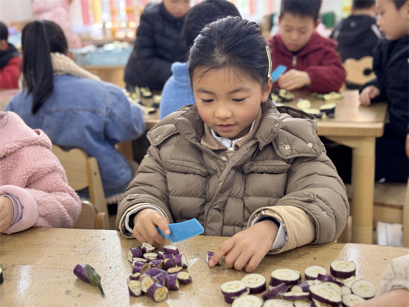 为引导幼儿亲近自然、感知食物生长奥秘,在动手实践中培养观察力与探究精神,2026年3月20日上午,合肥市大西门幼儿园教育集团森林城分园大一班组织开展了“茄子的奇妙旅程”主题实践活动,通过“看、切、晒”的多感官体验,让孩子们在趣味探索中收获成长。