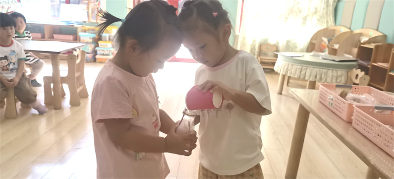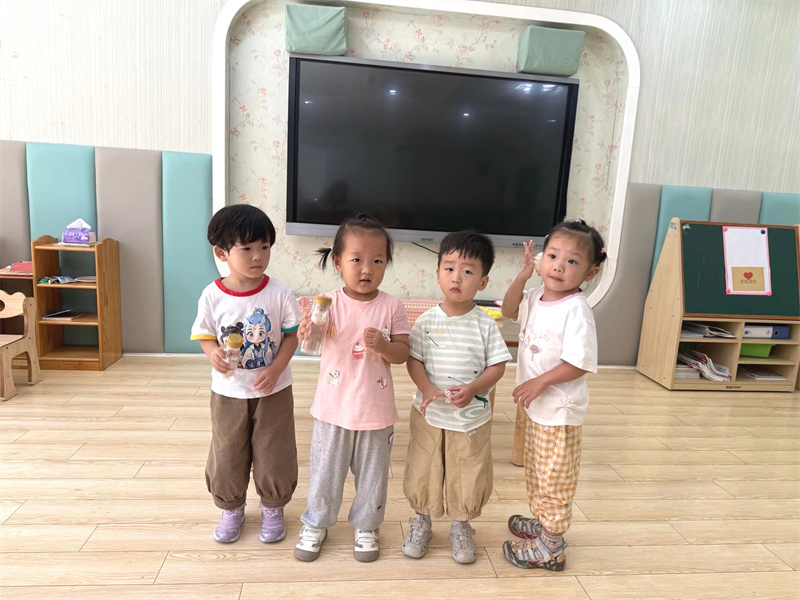 活动最后,老师和孩子们一起总结:原来小小的瓶子里,能装下“大海”的颜色,还能藏着这么多好听的声音!这场充满触感、视觉与听觉的探索,让萌娃们在玩中感受科学的奇妙,也埋下了爱探索的小种子。