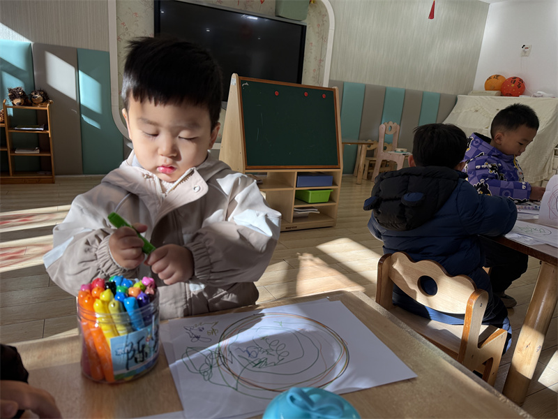 为响应国家学前教育促进法中“注重幼儿综合素质培养”的政策要求,激发托班幼儿色彩感知力,锻炼手部精细动作发展,2025年12月26日,合肥市大西门幼儿园教育集团森林城分园托班开展“水彩笔跑圈圈”趣味美术活动,让孩子们在自由涂鸦中解锁创意乐趣。