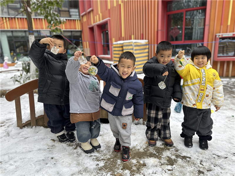 一场大雪悄然而至,幼儿园里银装素裹。为了让宝贝们感受冬日独有的乐趣,2026年1月20日,合肥市大西门幼儿园教育集团森林城分园小六班开展了一场充满童趣的“冻冰花”自然探索活动。