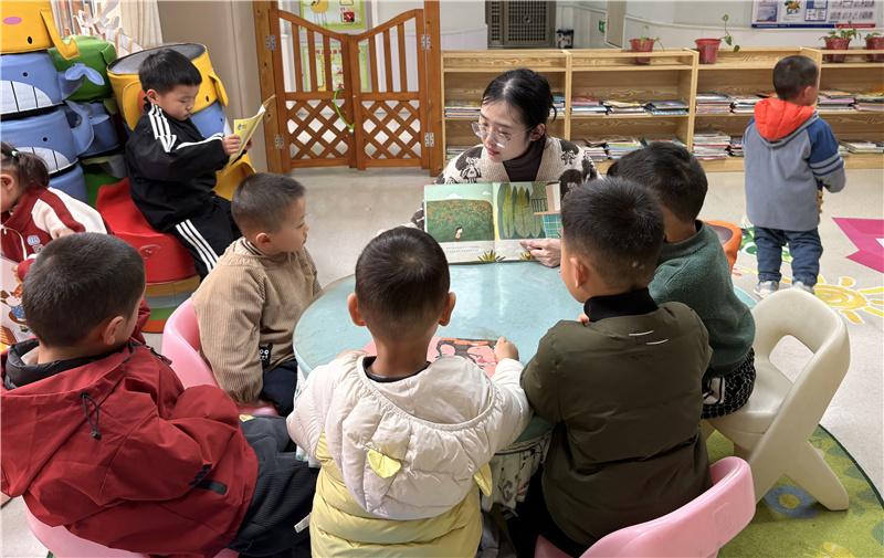 活动伊始,孩子们在老师的引导下有序进入阅览室。他们轻手轻脚地穿梭在书架间,自主挑选心仪的绘本,孩子们或独自专注翻阅,或与同伴轻声交流书中内容。有的小朋友捧着绘本,眼神专注地探寻画面里的奇妙世界;有的两两结伴,指着绘本上的图案小声分享,稚嫩的交流声里满是对知识的好奇。老师则穿梭在孩子们中间,适时为他们讲解绘本内容,解答阅读中的疑问,引导幼儿观察画面细节、理解简单情节,用温柔的陪伴为阅读之旅保驾护航。