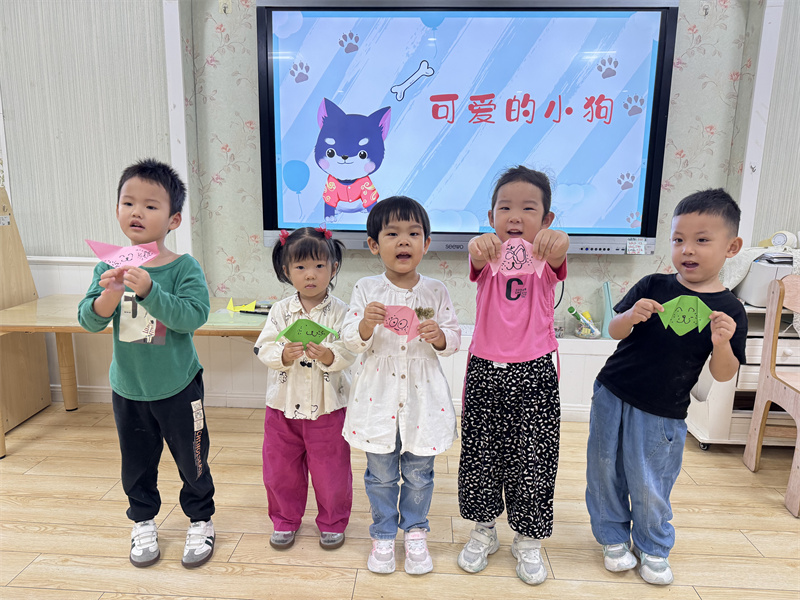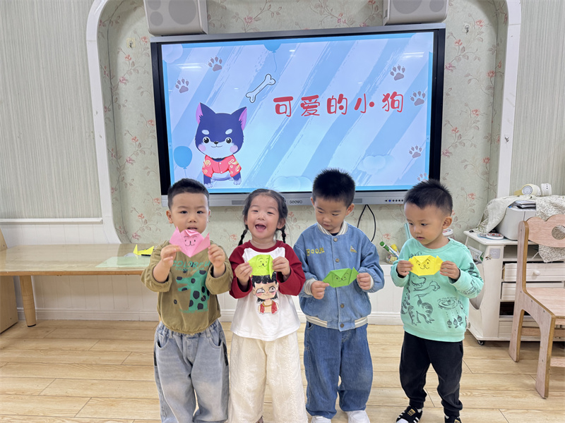 一张张彩纸在孩子们手中宛如魔法卡片,变成了一只只可爱的小狗。看着栩栩如生的作品,孩子们的成就感油然而生。赶快来欣赏我们的艺术大作吧!
