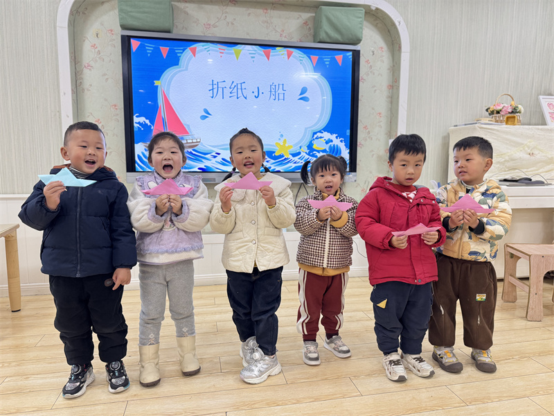 活动最后,孩子们展示作品,分享自己的“小船故事”,有的说要让小船“载着梦想去远航”,有的开心展示同伴合作的成果,现场洋溢着欢乐与自豪。此次活动不仅让幼儿掌握了基础折纸技能,更在动手实践中培养了耐心与专注力,让孩子们在轻松愉悦的氛围中感受手工创作的乐趣,种下探索与创造的种子。