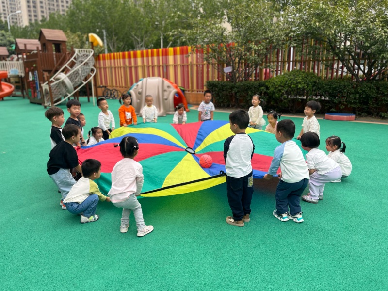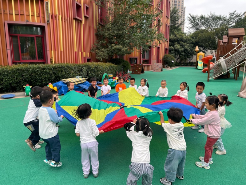 小五班:欢乐彩虹伞活动,共筑童趣时光