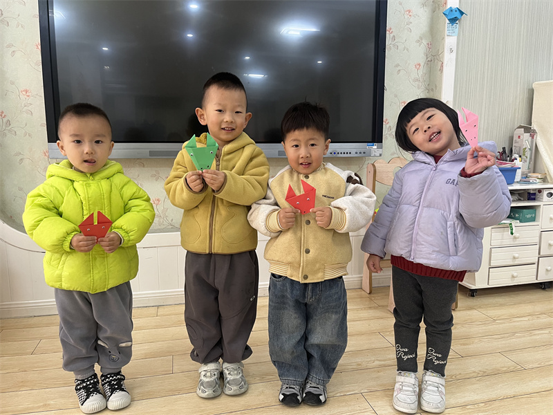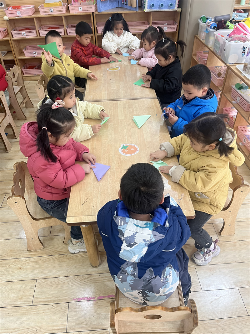 孩子们认真观察折纸示意图,学习对边折、对角折等基础技巧。虽然小手尚不够灵活,但他们专注的眼神与努力的模样,让老师十分欣慰。当可爱的小马在手中诞生时,孩子们的脸上满是成就感与喜悦。