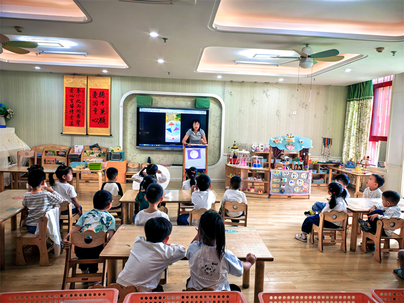 活动伊始,老师以“雨天里的小花伞”为故事线索,引导孩子们观察生活中雨伞的形状、色彩与图案,激发他们的创作兴趣。随后,老师为孩子们分发了圆形白色卡纸、彩色手工纸、画笔等材料,鼓励大家大胆发挥想象,设计属于自己的“小花伞”。