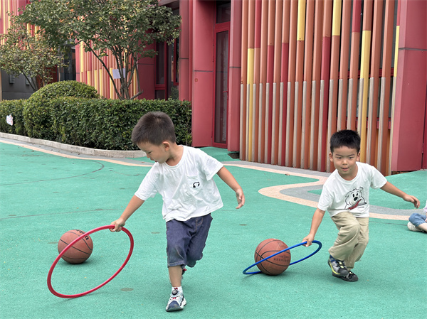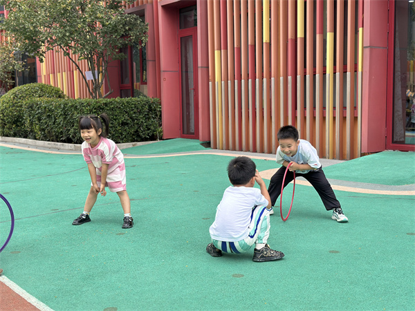 户外运动就像幼儿成长路上的“能量加油站”——不仅能帮孩子们增强体能、让动作更灵活,还能让他们在新鲜空气里放松心情,养成积极乐观的好心态。而这次“玩圈”活动,更藏着“一物多玩”的巧思,既点燃了想象力,也让他们学会换个角度探索物品的新玩法,慢慢培养创造性思维。