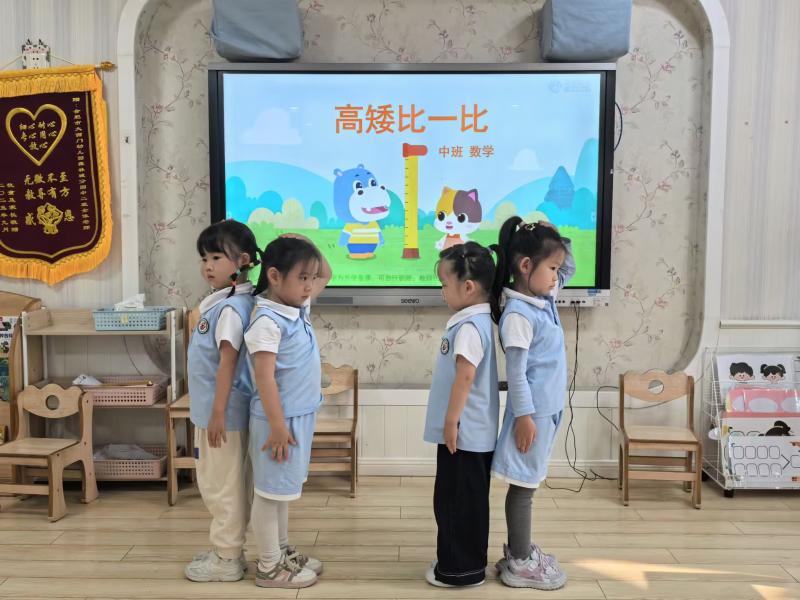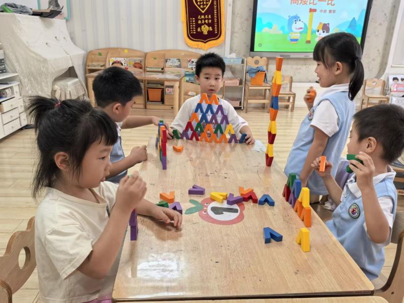活动中,孩子们积极动手、大胆表达,不仅准确掌握了高矮比较的方法,还在合作游戏中增强了观察力与语言表达能力。老师们则注重引导孩子发现生活中的数学,让抽象的概念变得具体可感。
