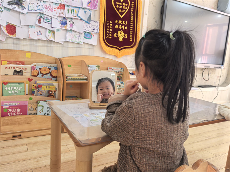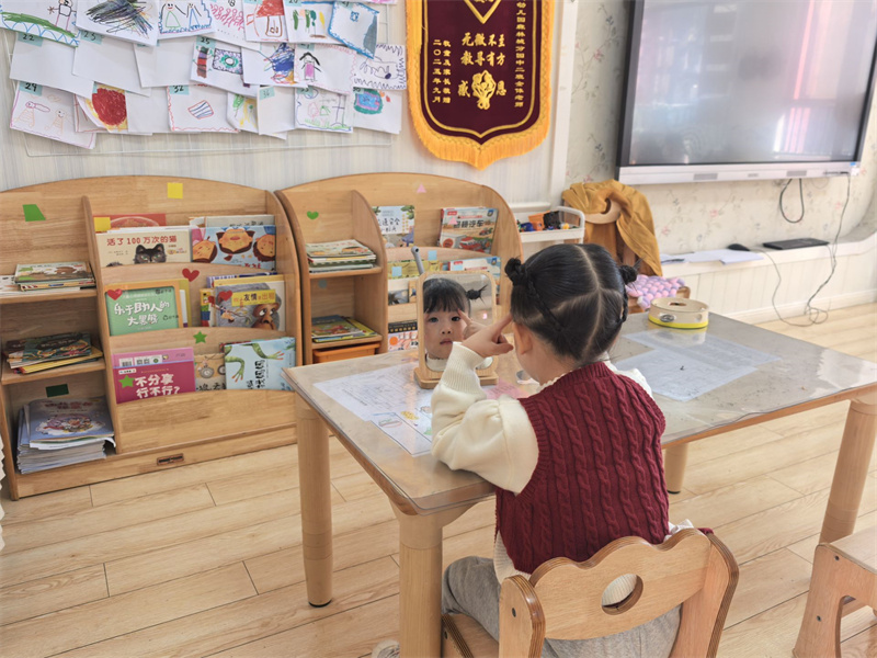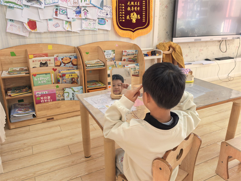 “看!我的笑脸和别人不一样!”“这是我画的自己,有长长的辫子!”孩子们在观察、创作及教师的镜头记录中,发现自身闪光点,每一张照片都定格着专属的成长瞬间。
