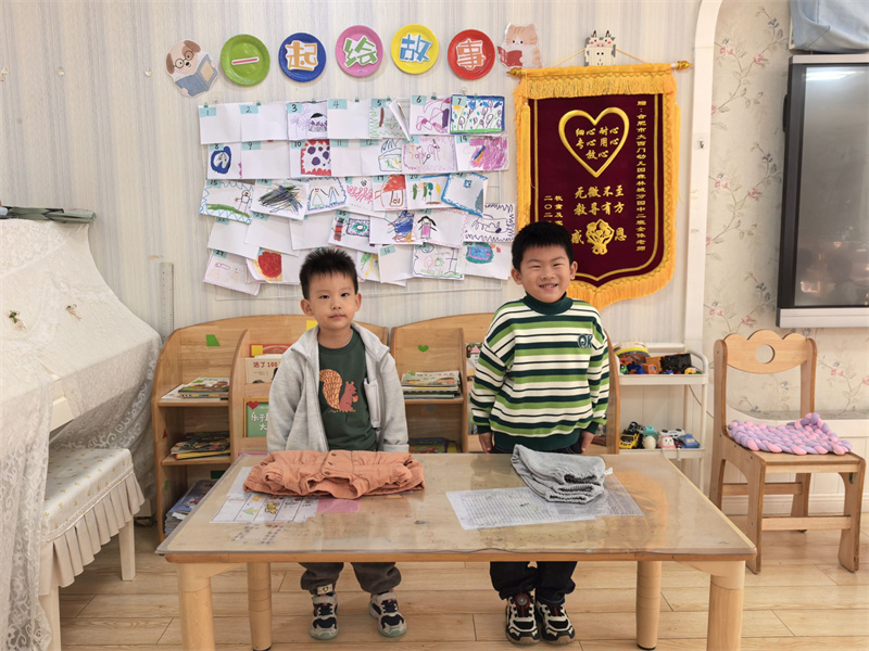 活动现场处处是“发现与表达”的热闹场景。在“镜子里的我”环节,孩子们对着小镜子观察五官特征——有的指着眉毛说“我的眉毛像小船”,有的摸着脸颊说“我笑起来有小梨涡”,教师则用手机捕捉孩子们认真观察的模样,留下一张张生动的“自赏瞬间”;到了“我的专属画像”创作环节,孩子们拿起彩笔,画出自己眼中的“特别模样”:有的画出爱穿裙子的自己,有的添上喜欢的恐龙图案当“专属标志”,完成后纷纷举着作品冲向镜头,留下与画作的同框笑脸;最温馨的是“本领展示”环节,会叠衣服的孩子现场演示,会唱儿歌的孩子大胆开嗓,教师用照片记录下他们自信展示的模样。