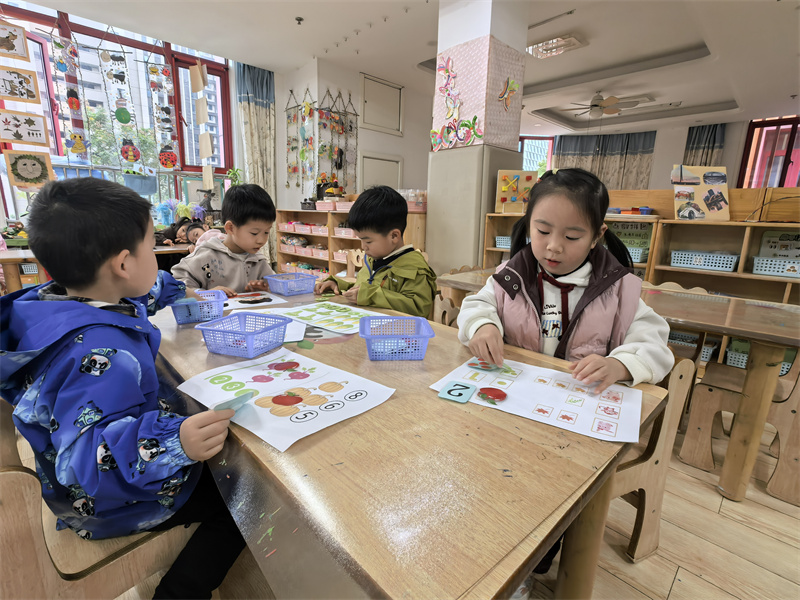 活动中,孩子们化身“点数小能手”,专注地用手指着卡片,稚嫩的声音整齐地数着“1、2、3……”,遇到数量较多的卡片时,还会和同伴互相核对、轻声讨论。当成功数对物品数量时,他们会露出骄傲的笑容,兴奋地向老师展示自己的成果。