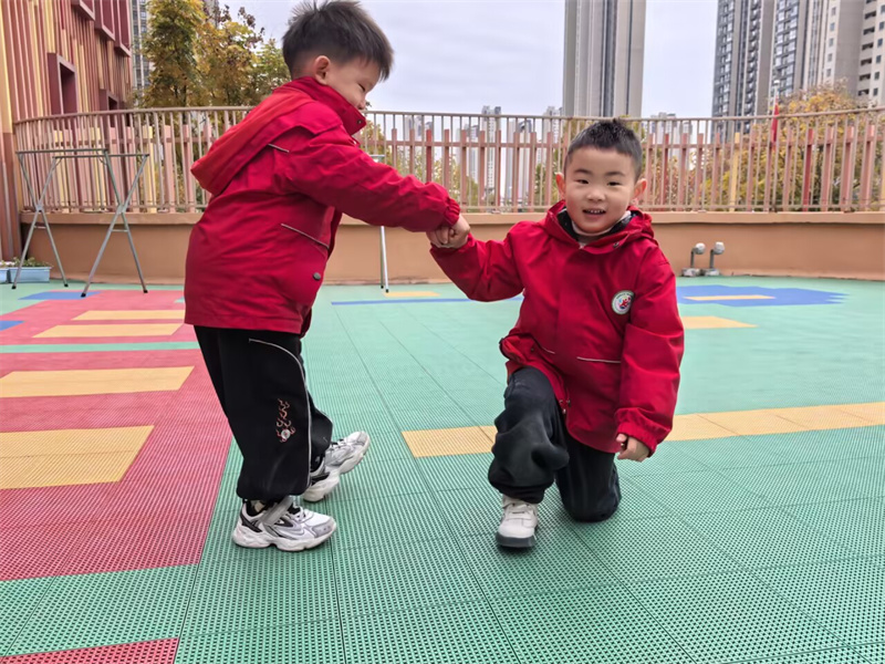 日常里,互助的画面也变多了:吃饭时递勺子、户外活动扶起摔倒的同伴,“谢谢你”“不客气”成了班级里最动听的话。