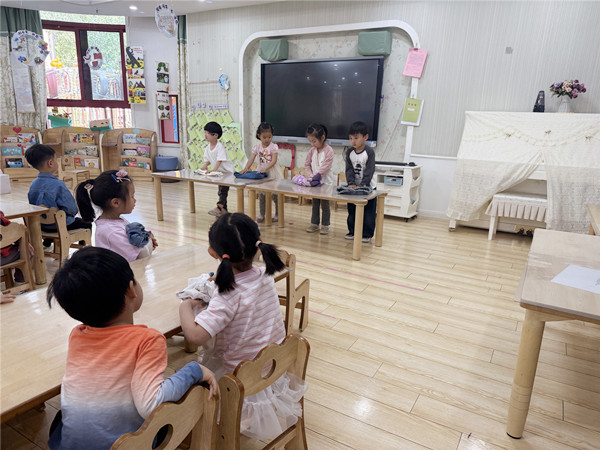 首先,老师用一个关于小动物学习自理的故事吸引了孩子们的注意力,故事中的小动物通过自己的努力学会了穿衣和整理房间,孩子们听得津津有味,眼中闪烁着好奇和兴奋的光芒。紧接着,比赛开始了。小选手们神情专注,随着老师一声令下,孩子们迅速行动起来。叠衣服时,小手认真地抚平褶皱、对齐边角;穿鞋子环节,他们快速找准鞋口,努力把小脚伸进去并扣好鞋扣。周围的小观众们也没闲着,纷纷为小伙伴们加油助威,“加油,加油”的呼喊声此起彼伏。