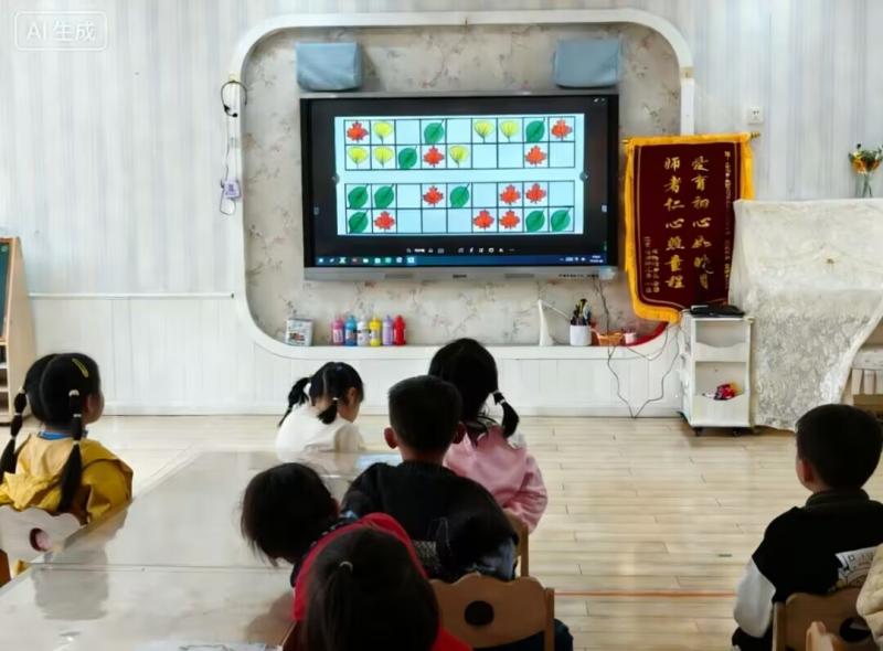 活动中,教师精心设计生动有趣的教学内容,通过大屏幕展示色彩鲜艳的树叶、食物、水果等图案,引导幼儿观察、发现ABAB、AABB等基础排序模式。孩子们全神贯注、认真观察,在集体讨论中大胆分享自己的发现,课堂氛围活跃而浓厚。在互动实践环节,教师鼓励幼儿主动参与规律创编与填空。孩子们大胆尝试,在一次次操作与验证中,逐步掌握按规律排序的方法,有效提升观察、分析和推理能力,展现出良好的逻辑思维水平。