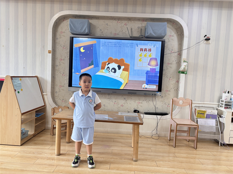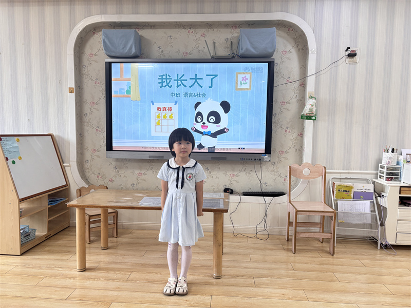 活动伊始,老师声情并茂地讲述了绘本故事《我长大了》,用生动的情节引导幼儿思考“成长是什么”。故事结束后,老师顺势提问:“从小班升到中班,大家发现自己有哪些不一样的地方呀?”孩子们纷纷举手分享:“我现在能自己叠小毛巾了,小班时还需要老师帮忙!”“中班的桌子比小班高一点,我坐着正好!”“我会主动和小朋友分享玩具,不像以前总想着自己玩。”稚嫩的话语里,满是对成长的自豪。