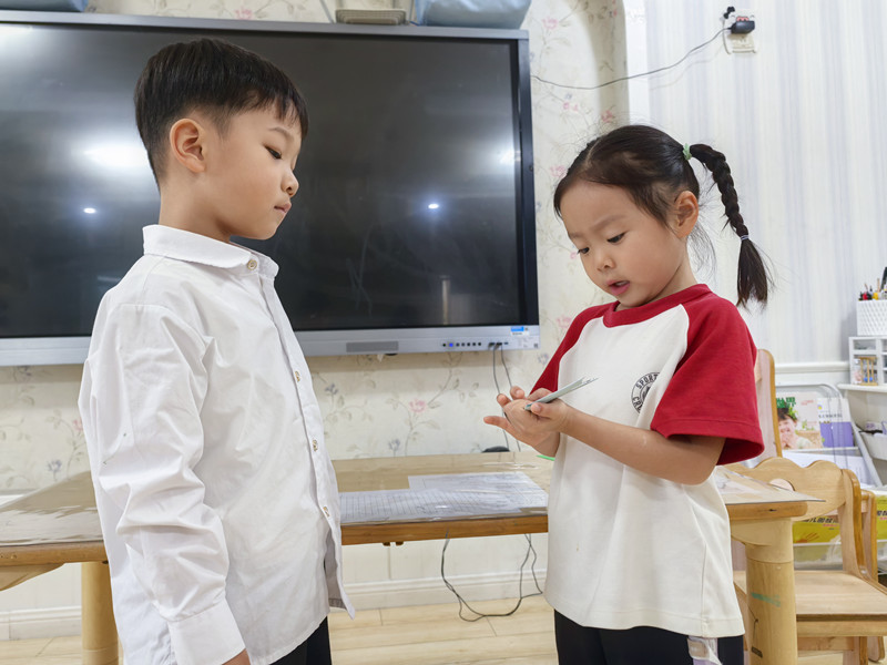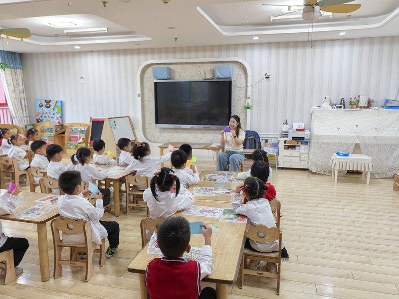 最热闹的环节当属“分享时刻”。孩子们手持自己的“蛋糕作品”,主动走向同伴,兴奋地分享创作:“你看!我的蛋糕上有甜甜的草莓!”“我给蛋糕画了彩虹蜡烛,我们一起‘吹蜡烛’吧!”稚嫩的话语里满是骄傲,同伴间的夸赞与互动不断,教室里洋溢着欢声笑语。这份纯粹的分享,让孩子们收获了双倍的快乐,也加深了彼此间的友谊。